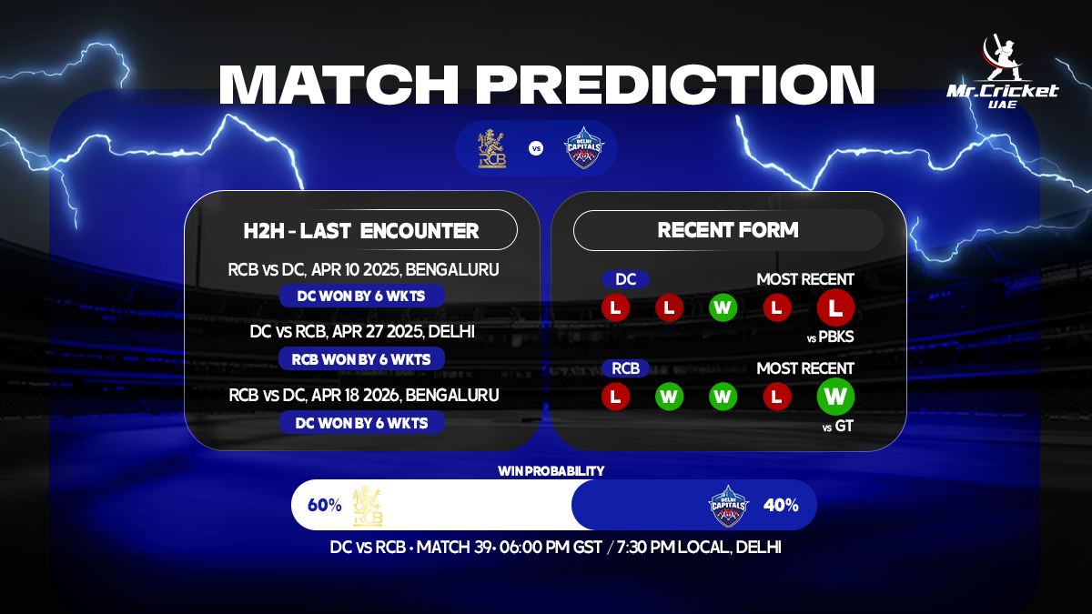 Delhi Capitals (DC) will take on Royal Challengers Bengaluru (RCB) in Match 39 of the Indian Premier League 2026 (IPL 2026) on Monday, April 27 at Arun Jaitley Stadium, Delhi. DC are coming into the game, having suffered back-to-back losses against Sunrisers Hyderabad (SRH) and Punjab Kings (PBKS).