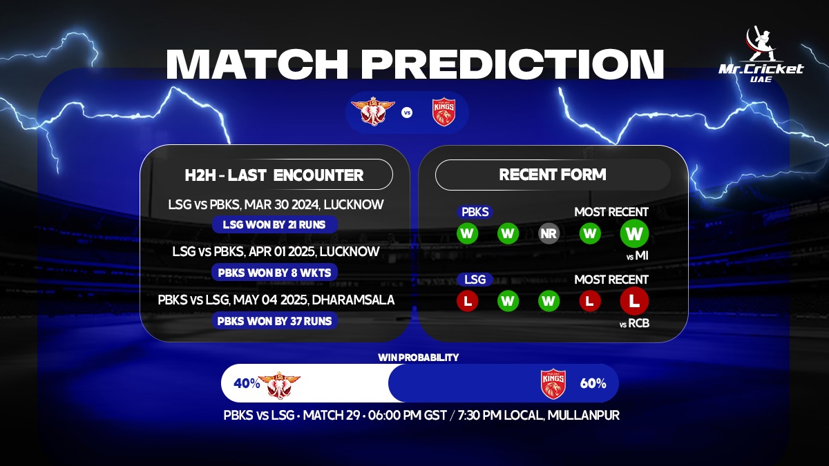 Punjab Kings (PBKS) will take on Lucknow Super Giants (LSG) in Match 29 of the Indian Premier League 2026 (IPL 2026) on Sunday, April 19 at Maharaja Yadavindra Singh International Cricket Stadium, Mullanpur, New Chandigarh. The Shreyas Iyer-led side has been on a roll this season, being the only unbeaten team so far.